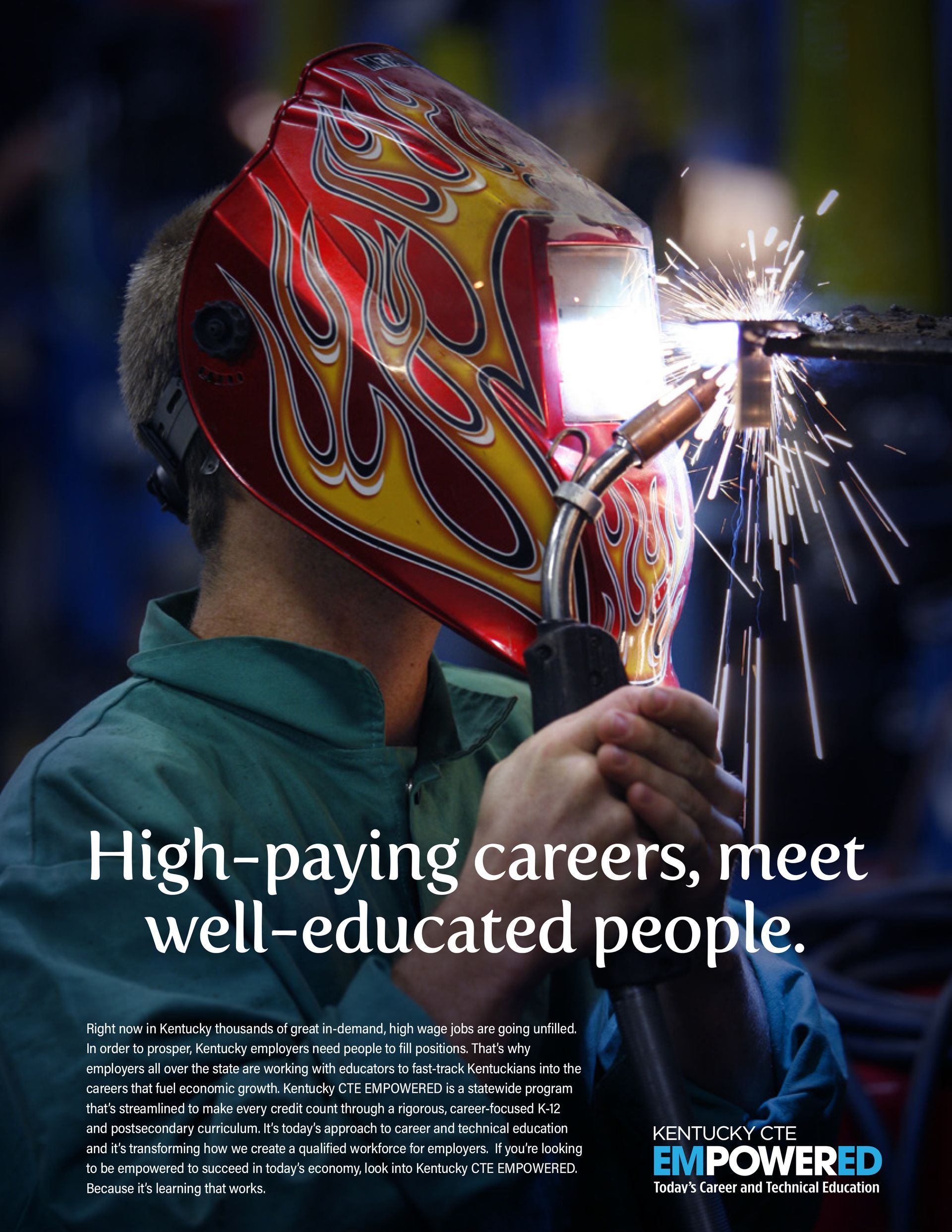 As Kentucky becomes ever more attractive for companies bringing business to the state, the Commonwealth’s workforce needs to grow and gain the skills needed to make those businesses thrive. Kentucky Career & Technical Education, an arm of the Cabinet for Education and Workforce Development, asked Red7e to create a brand theme and a series of promotional messages that did three things: a) Encourage adults to improve their employment prospects through postsecondary education and training programs, b) Encourage educators and administrators to provide more specific job-focused training and certification programs, and c) Encourage employers to engage with educators and job-seekers to implement the right kinds of programs that produce well-qualified and highly motivated employees.